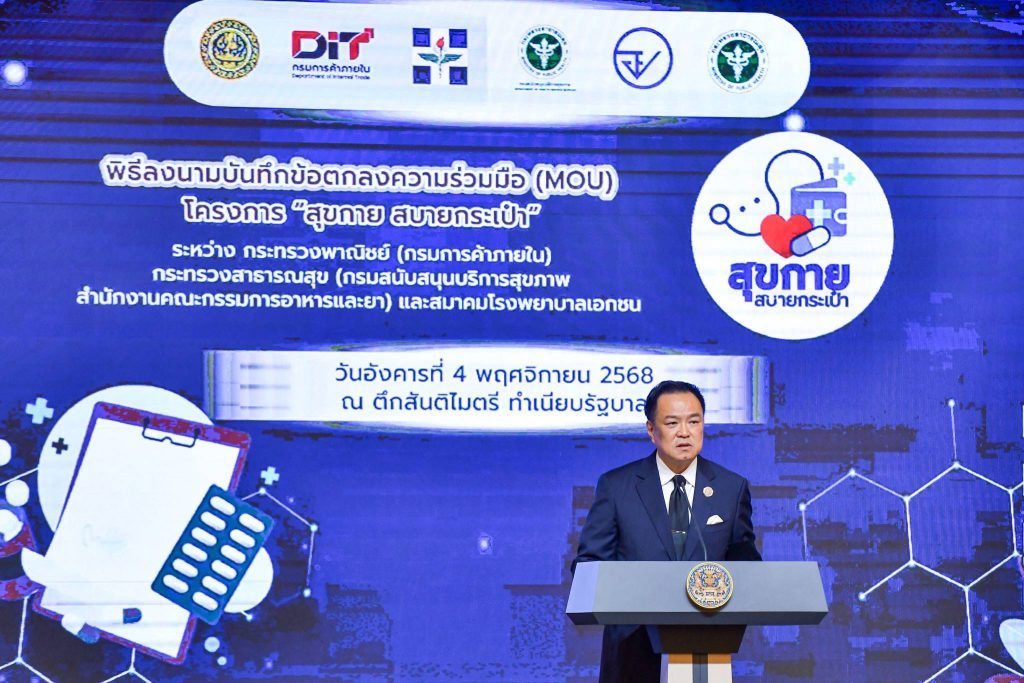 พิธีลงนามบันทึกข้อตกลงความร่วมมือ (MOU) จัดขึ้น ณ กระทรวงพาณิชย์ โดยมี นายอนุทิน ชาญวีรกูล นายกรัฐมนตรีและรัฐมนตรีว่าการกระทรวงมหาดไทย เป็นประธานในพิธี พร้อมด้วย รัฐมนตรีว่าการกระทรวงพาณิชย์ กระทรวงสาธารณสุข และตัวแทนจาก สมาคมโรงพยาบาลเอกชน เข้าร่วมอย่างพร้อมเพรียง