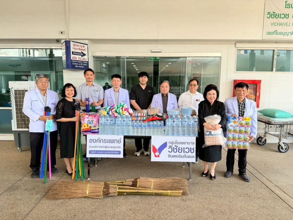 3 ธันวาคม 2568 – กลุ่มโรงพยาบาลวิชัยเวช อินเตอร์เนชั่นแนล นำโดย ภญ.ดร.ตีรวรรณ วนดุรงค์วรรณ รองประธานเจ้าหน้าที่บริหาร พร้อมด้วยคณะผู้บริหาร ผู้จัดการ และบุคลากรทางการแพทย์จากโรงพยาบาลวิชัยเวชฯ ทั้ง 3 สาขา (อ้อมน้อย, หนองแขม และแยกไฟฉาย) รวมพลังส่งมอบความห่วงใยและสิ่งของจำเป็น เพื่อช่วยเหลือผู้ประสบอุทกภัยในพื้นที่จังหวัดสงขลา